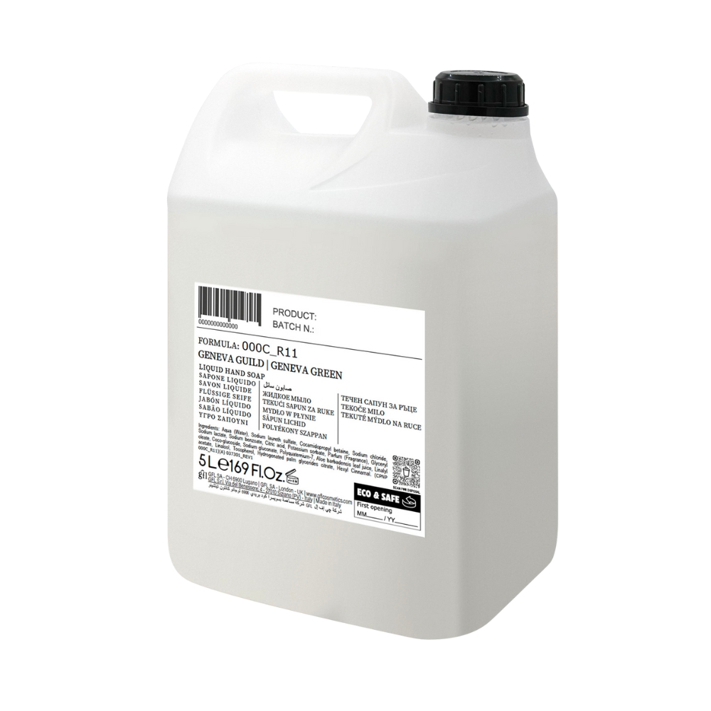 O sabonete líquido Geneva Guild limpa suavemente as mãos, mantendo a pele hidratada, suave e revitalizada. Enriquecido com extratos orgânicos de aloé vera, proporciona frescura e conforto imediato, transformando cada lavagem num momento de cuidado e bem-estar.